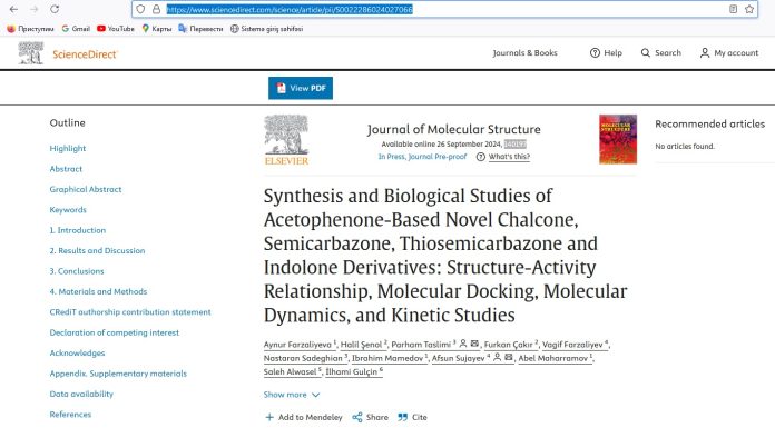 Another important results were obtained in the course of the research on the topic “Synthesis and biological studies of new chalcone, semicarbazone, thiosemicarbazone and indolone derivatives based on acetophenone: structure-activity relationship, molecular addition, molecular dynamics and kinetic studies”, conducted at the international level by scientists of the Institute of Chemistry of Additives named after Academician Ali Guliyev of the...