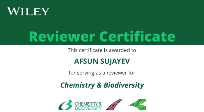 The expert activity of the Executive Director of the Institute of Chemistry of Additives of Azerbaijan National Academy of Sciences, Doctor of Chemical Sciences, Associate Professor Afsun Sujayev in the international journal "Chemistry & Biodiversity" was highly appreciated. According to the institute, in 2021 Afsun Sujayev was awarded this certificate for his work. A.Sujayev has been collaborating with this...