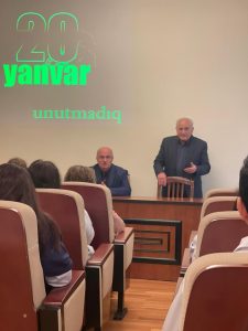 İnstitut Həmkarlar Təşkilatının sədri k.ü.f.d., dosent Elxan İsakov “20 yanvar xalqımızın zəfər yolunun başlanğıcıdır” mövzusunda təqdimatla çıxış edərək bildirib ki,: “20 Yanvarın təkcə faciə deyil, həm də Azərbaycanın istiqlal yolunun ilk zirvəsi, milli məfkurəmizin azadlıq istəyinin oyanış günüdür. Azərbaycan xalqı 20 Yanvar şəhidlərinin xatirəsini əziz tutur. Hər il faciənin ildönümü izdihamlı ziyarətlərlə müşayiət edilir, xalq istiqlal fədailərinin məzarlarına faciənin simvoluna çevrilmiş al qərənfillər düzür, onları qürurla anır, qatillərini lənətləyir, bu faciəni törədənlərə dərin nifrətini bildirir”.