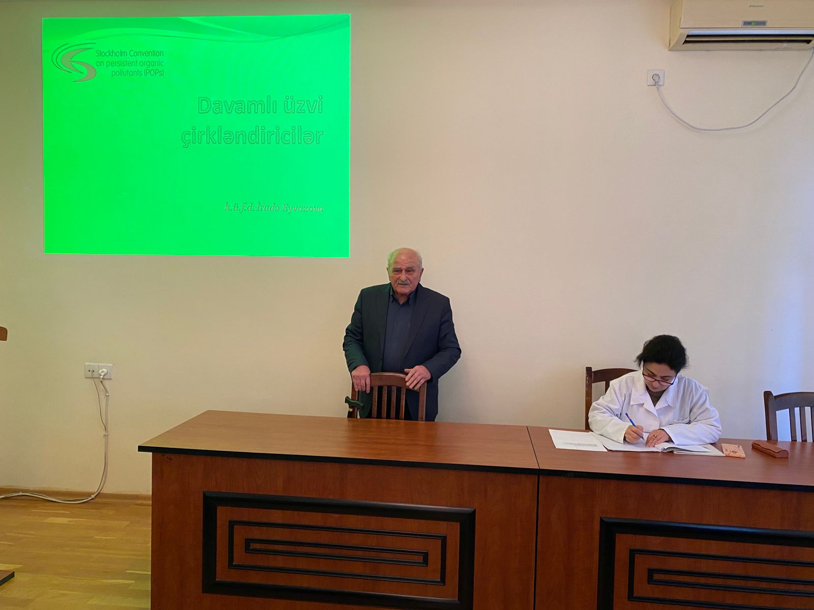 Sonra kimya üzrə fəlsəfə doktoru İradə Eyvazova “Davamlı üzvi çirkləndiricilər” mövzusunda təqdimatla çıxış edib.
